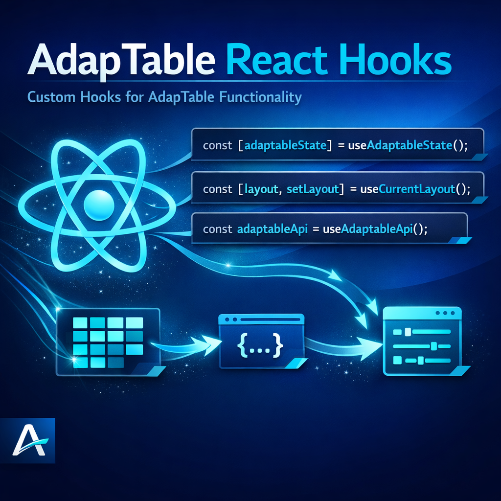 3 new bespoke React hooks to access AdapTable State, Layouts and API in AdapTable React
