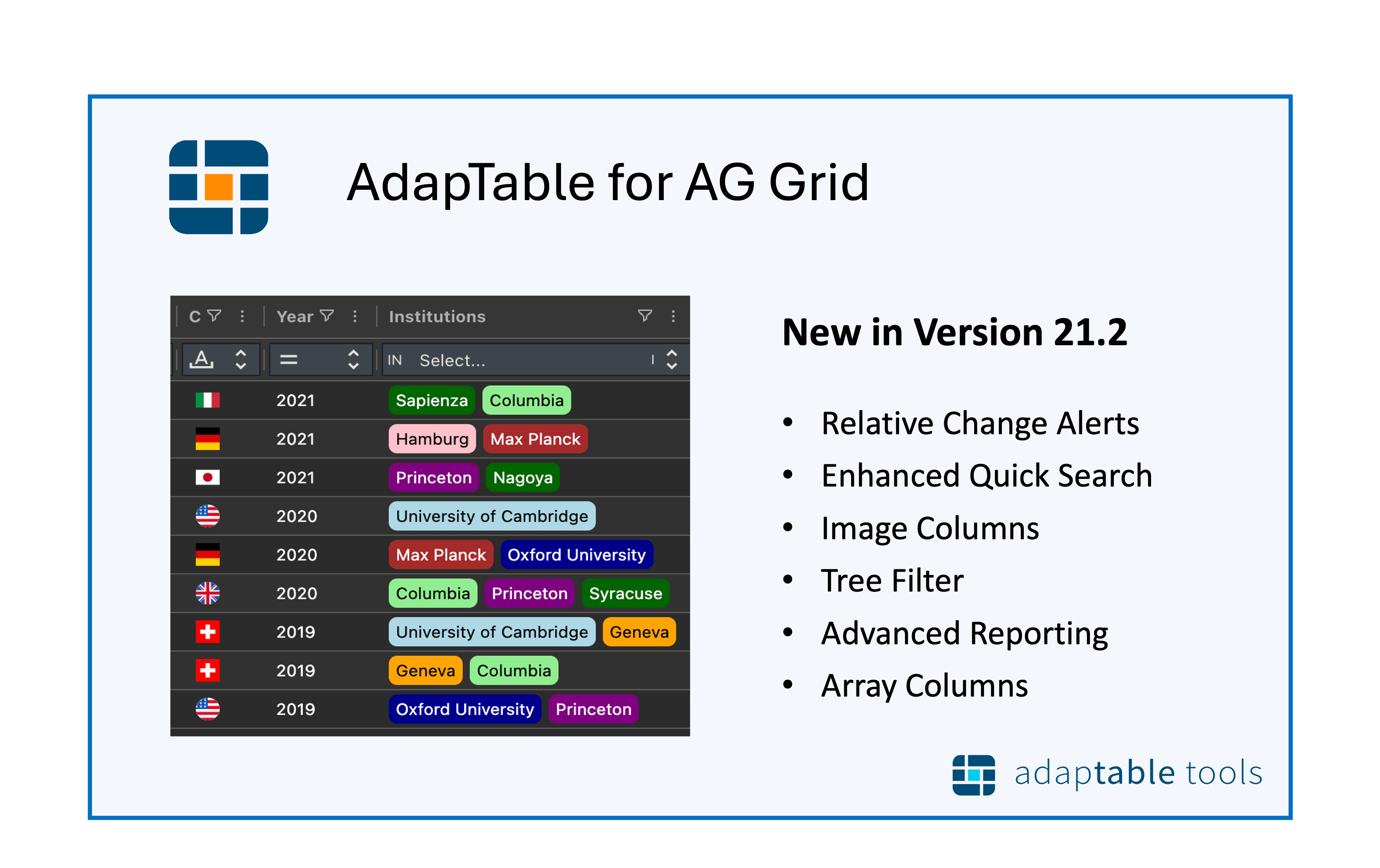 AdapTable 21.2 is the latest version of our market-leading AG Grid extension.