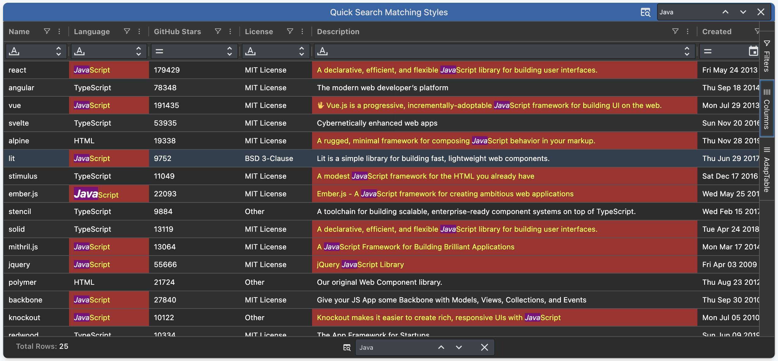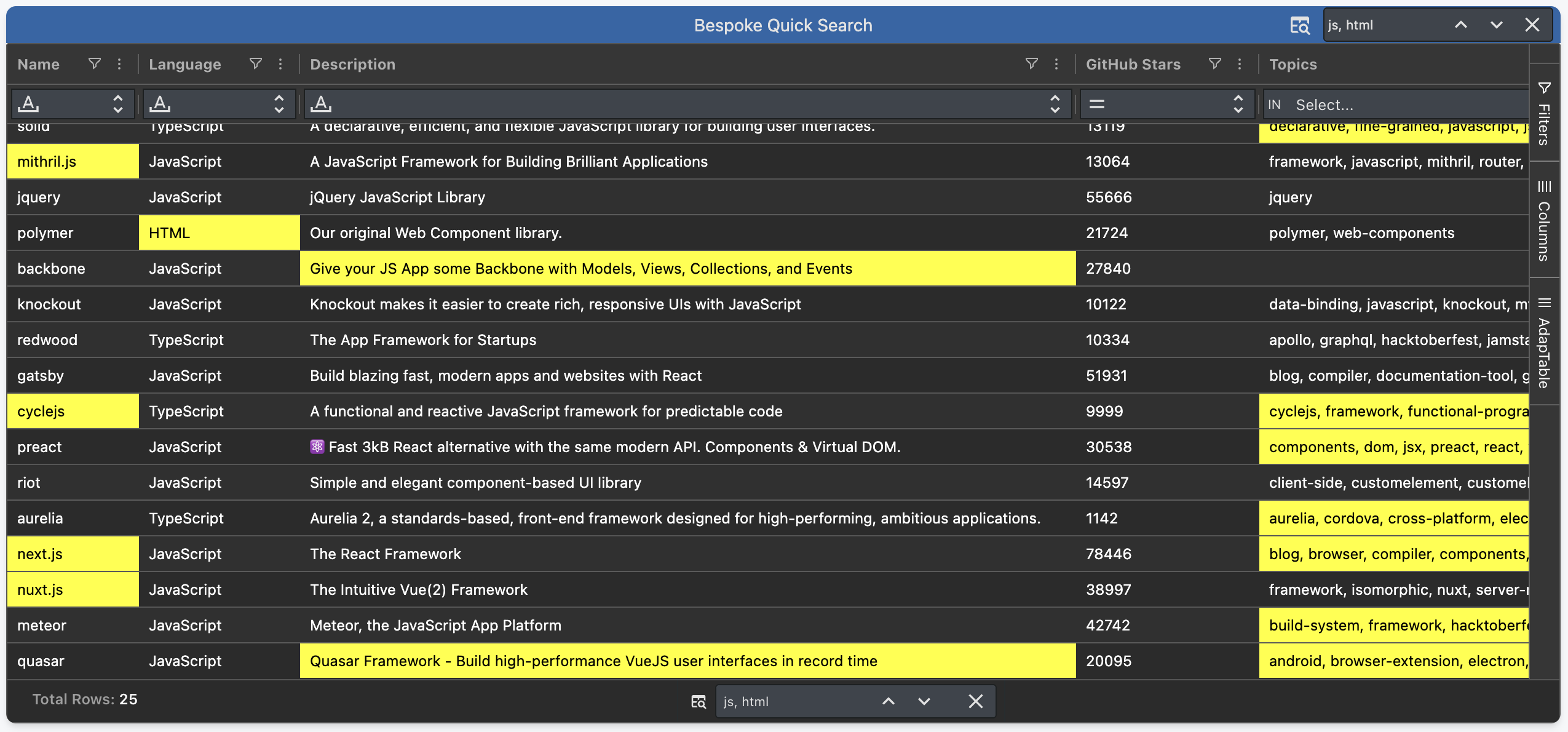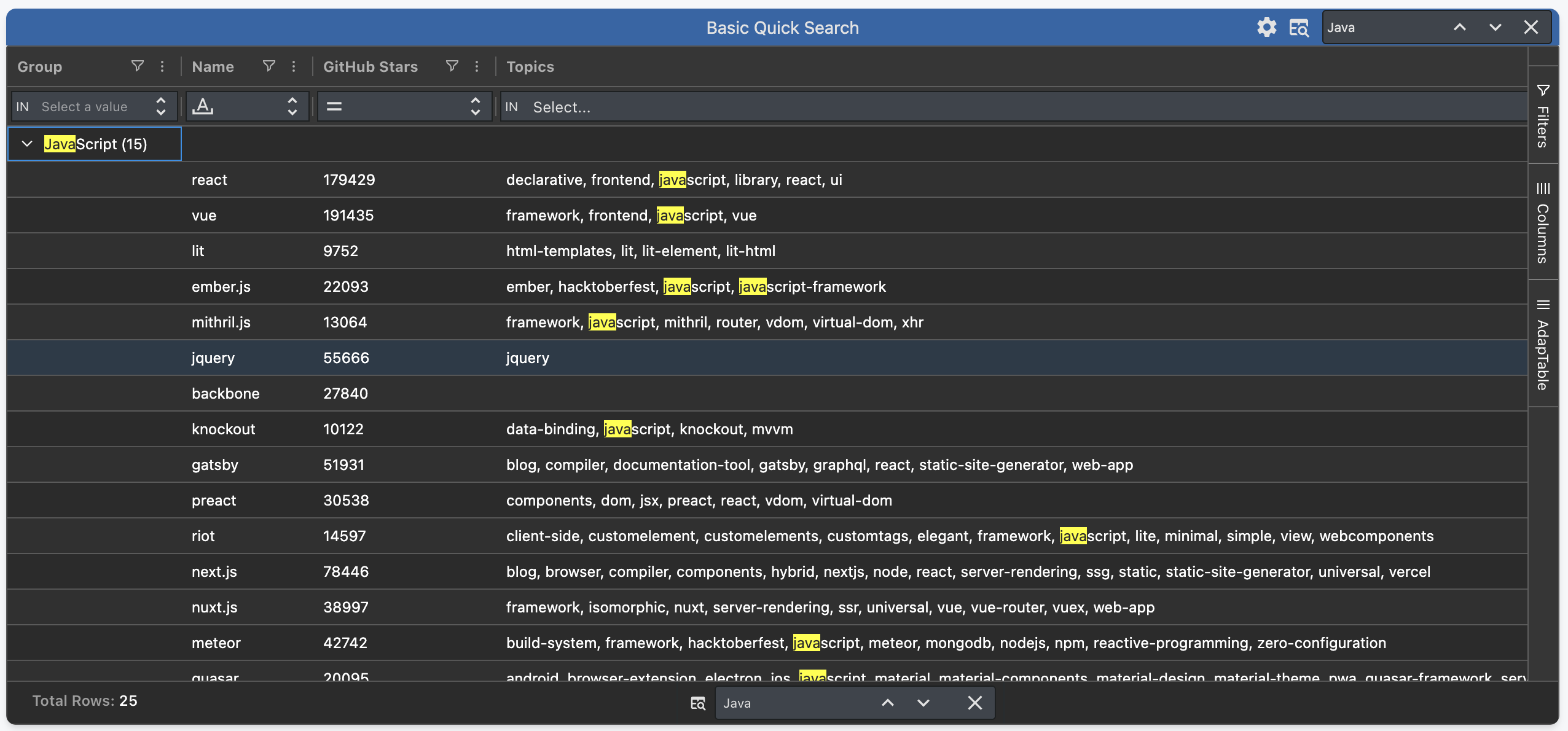 AdapTable's Quick Search has been refactored and extended in a number of useful ways.