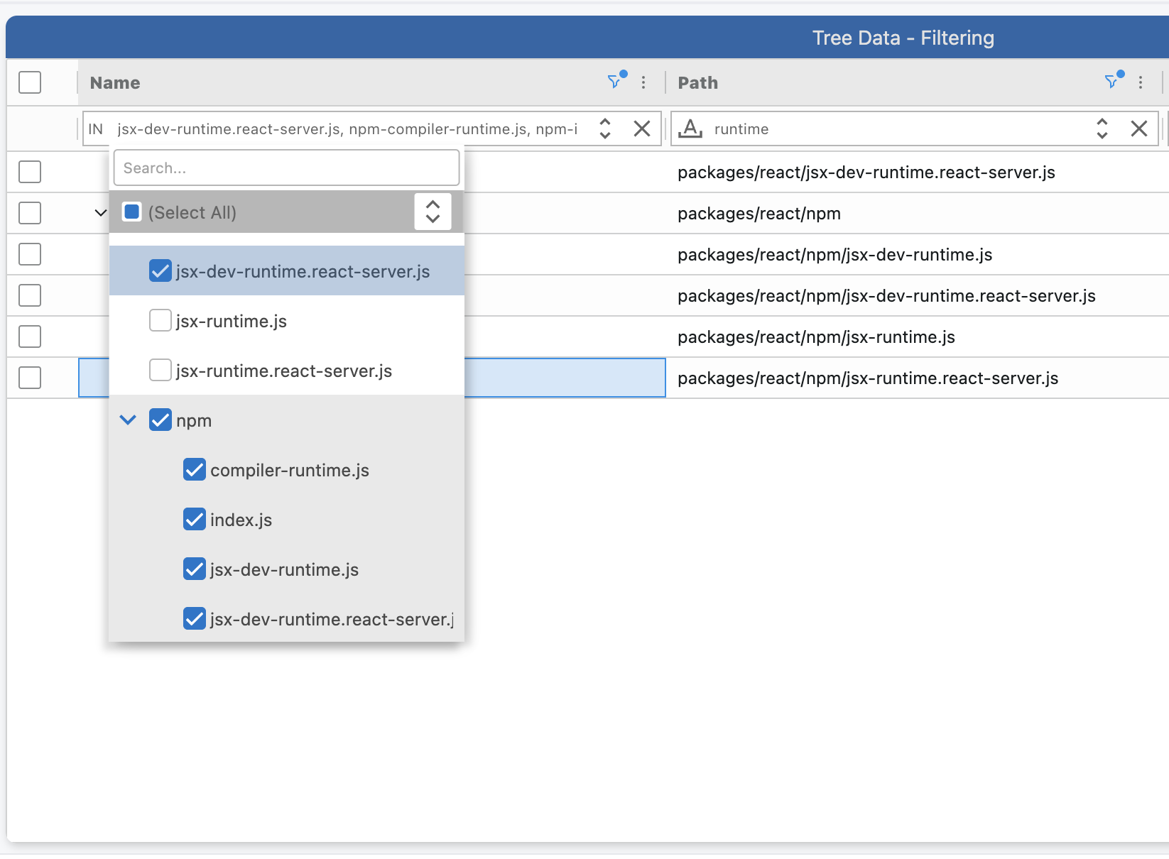 - Tree Filter for Date, Row Group and Tree Grid columns
