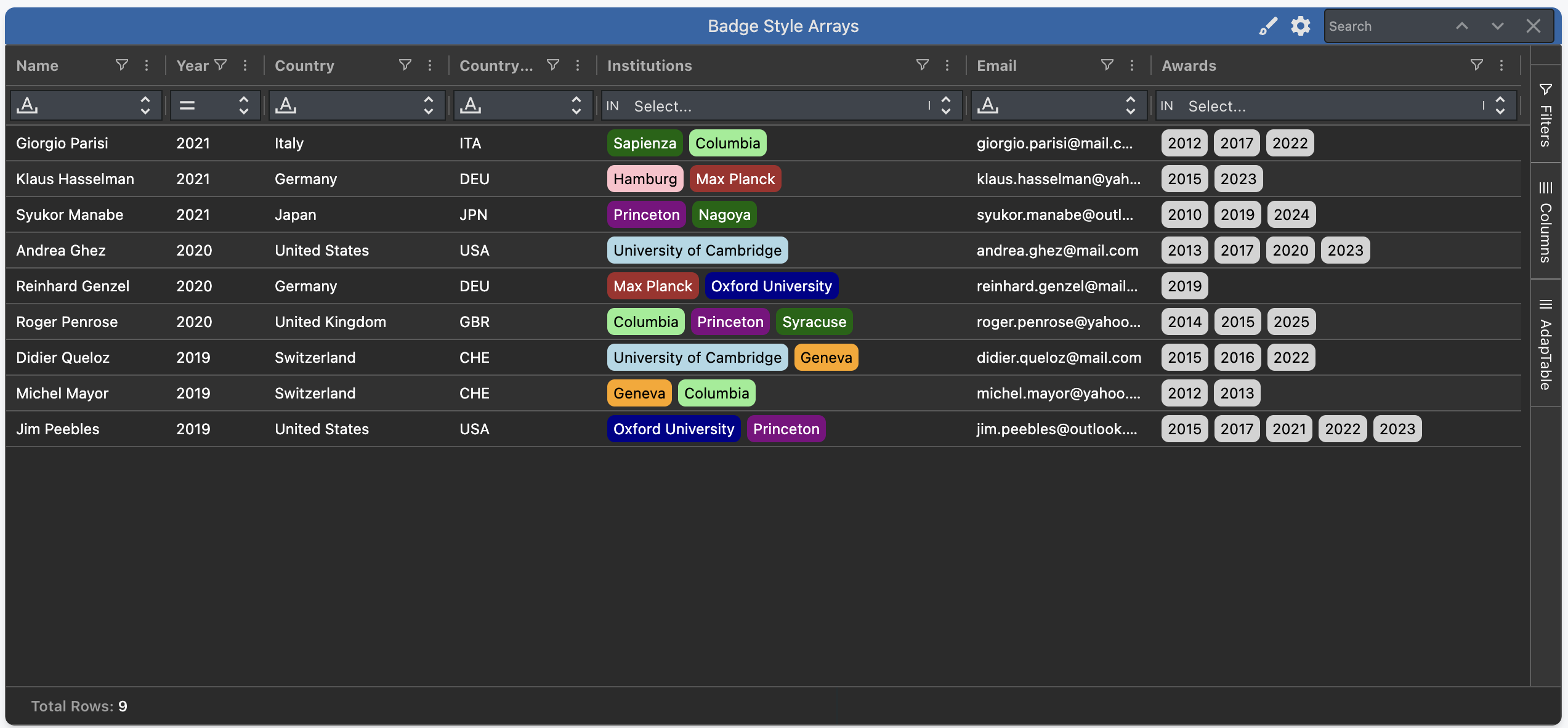 AdapTable styles each element in the Array as its own Badge.